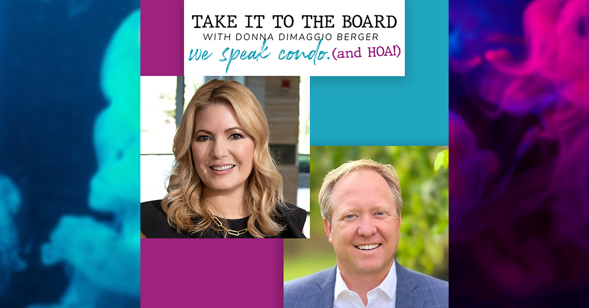 Think you know what community association life is all about? Think again. Residents must obey the rules, directors must follow the law, and managers must keep it all running smoothly. Take It To the Board explores the reality of life in a condominium, cooperative or homeowners’ association, what’s really involved in serving on its board, and how to maintain that ever-so-delicate balance of being legally compliant and community spirited. Leading community association attorney Donna DiMaggio Berger acknowledges the balancing act without losing her sense of humor as she talks with a variety of association leaders, experts, and vendors about the challenges and benefits of the community association lifestyle. Don’t have a streaming app? You can now find all episodes on YouTube! Click here to listen now.
