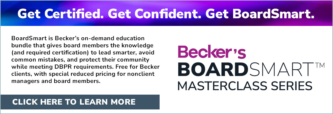 Also featured this month is Becker’s new bundled masterclass series, BoardSmart. This comprehensive eight-class program is designed for current and aspiring community association board members, property managers, and homeowners who want to understand how to effectively govern and sustain their communities. Click here to learn more