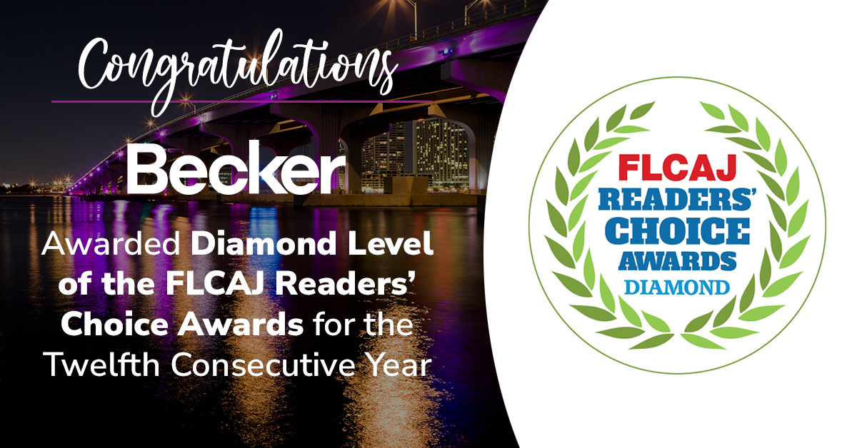 Becker Awarded FLCAJ Readers’ Choice Award for 12th Consecutive Year
