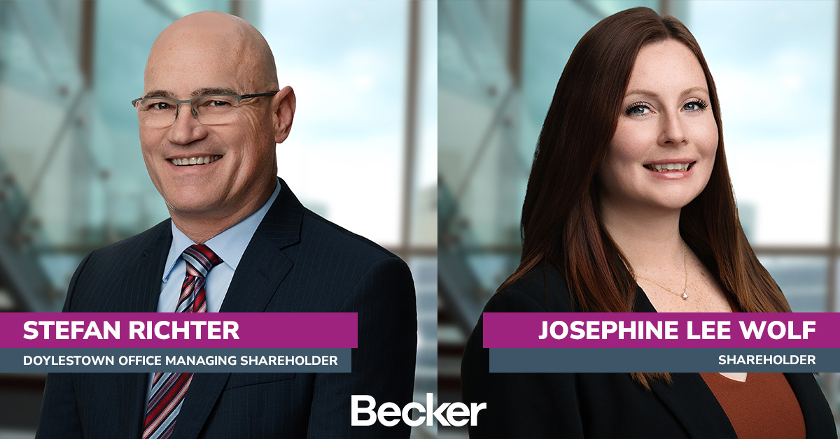 Becker Expands into Pennsylvania with New Doylestown Office; Experienced Community Association Attorneys Stefan Richter and Josephine Lee Wolf Join Firm